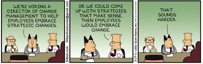 First and foremost, you must believe the change is valuable and set expectations that measure the results the change will bring. The change you are seeking is due to an important need, correct? What is your case or reason for change? Would the status quo suffice or is there no alternative? Lead by explicitly outlining why the current status quo can no longer be afforded and why this change is crucial for the organization. Unless teams understand the benefit, things will remain status quo and you may not see the outcome you hope to achieve for the organization. Defining the desired, future state and communicating what success looks like will help the team understand where to aim their efforts.